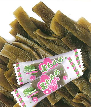 三陸産わかめの茎部分を紀州南高梅酢でシャキシャキの食感に仕上げました。脂質ゼロでヘルシーですので、女性のおやつにもぴったりです。便利な個包装にしています。